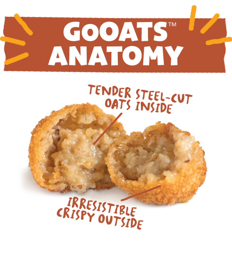 Life can be hectic. Getting your nutrition should be easy. GoOats™ are satisfying little bites of delicious steel-cut oats, milk and a touch of sweetness. It'll get you started in the morning, or keep you going any time of day. Just heat them, and enjoy delicious oatmeal-in-a-ball.